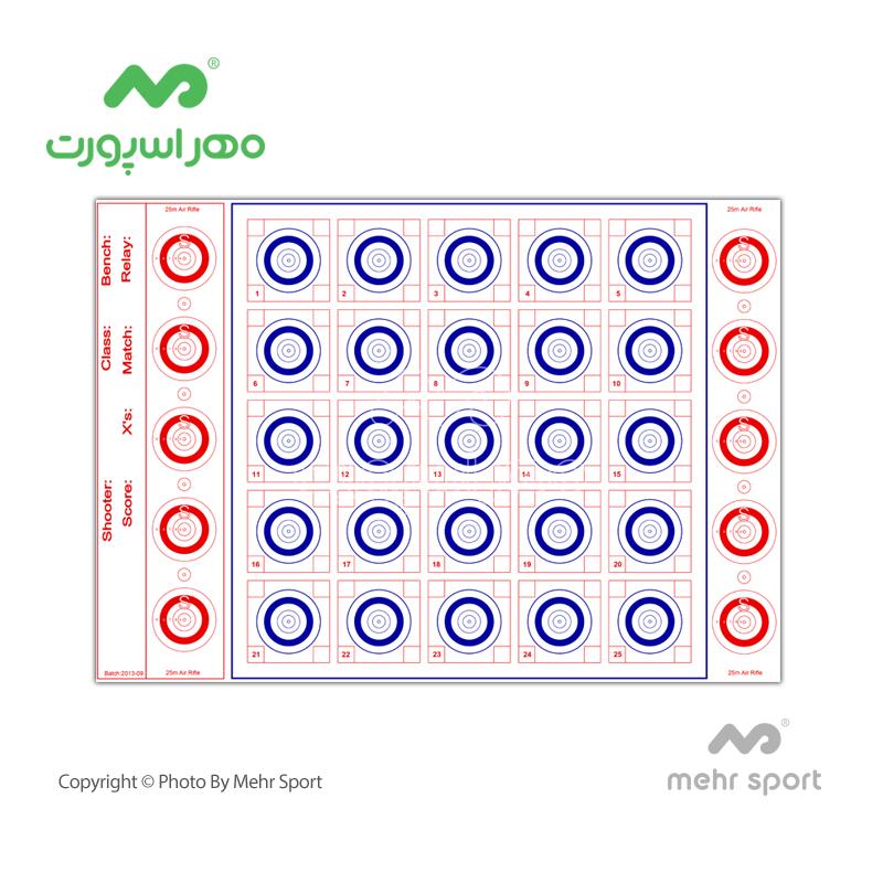 کارت هدف رنگی 25 متر بنچ رست، تولید شده با مقوای با کیفیت از جنس inderboard با چاپ 2 رنگ (استاندارد بین المللی). استفاده از مقوای inderboard با وزن 300 گرم در تولید این نوع سیبل بنچ رست باعث ثبت بهترین پانچ در اصابت ساچمه به هدف می شود که این قابلیت، استفاده از این سیبل در مسابقات رسمی را میسر می نماید.