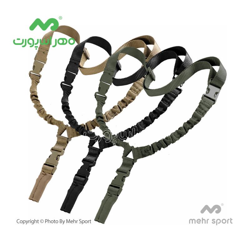 بند سلاح تاکتیکال تک گیره یکطرفه مدل آمریکایی باعث توزیع وزن سلاح بر روی شانه می شود و به تیرانداز اجازه تحرک و مانور بهتری میدهد. طول این بند سلاح از 40 تا 60 سانتی متر قابل تنظیم می باشد. استفاده از یراق های پلاستیکی نشکن و پوشش پارچه ای گیره اتصال به سلاح باعث بیصدا شدن این بند در حین عملیات شده است. وزن این بند سلاح 250 گرم می باشد و در سه رنگ سبز نظامی، مشکی و خاکی قابل عرضه می باشد.